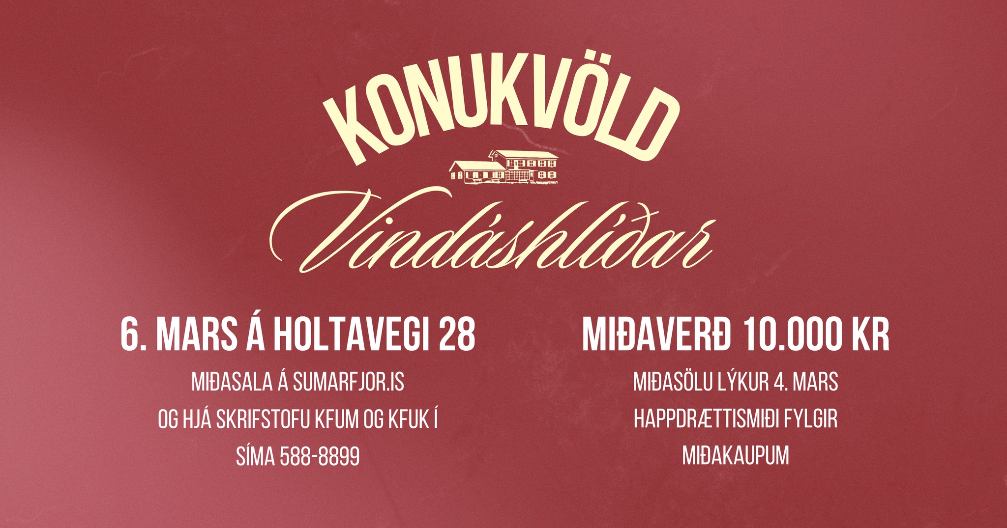 Þá er komið að því - Konukvöld Vindáshlíðar 2025! Konukvöldið verður haldið á Holtavegi 28, fimmtudaginn 6. mars. Húsið opnar kl. 18:30 og hefst borðhald kl. 19:00. Veislustjórn verður í höndum Sigurbjartar Kristjánsdóttur og Laufeyjar Gísladóttur. Söngatriði frá Helgu Magnúsdóttur [...]
